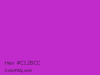 Hex #c12bcc Color is a normal magenta color and the nearest color is Steel Pink #cc33cc. Hex code #c12bcc and RGB value is rgb(193,43,204). In RGB color space, this color is composed of 76% red, 17% green, 80% blue, In CMYK color space, this color is composed of 5% cyan, 79% magenta, 0% yellow , 20% black , In HSL color space, this color has a hue angle of 296° , 65% saturation and 48% lightness.