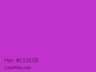 Hex #c131cb Color is a normal magenta color and the nearest color is Steel Pink #cc33cc. Hex code #c131cb and RGB value is rgb(193,49,203). In RGB color space, this color is composed of 76% red, 19% green, 80% blue, In CMYK color space, this color is composed of 5% cyan, 76% magenta, 0% yellow , 20% black , In HSL color space, this color has a hue angle of 296° , 61% saturation and 49% lightness.