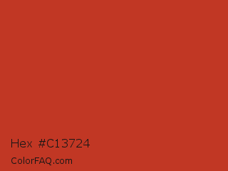 Hex #c13724 Color is a normal red color and the nearest color is Dark Pastel Red #c23b22. Hex code #c13724 and RGB value is rgb(193,55,36). In RGB color space, this color is composed of 76% red, 22% green, 14% blue, In CMYK color space, this color is composed of 0% cyan, 72% magenta, 81% yellow , 24% black , In HSL color space, this color has a hue angle of 7° , 69% saturation and 45% lightness.