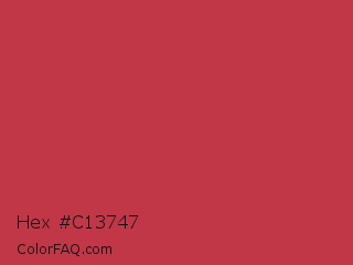 Hex #c13747 Color is a normal red color and the nearest color is Brick Red #c62d42. Hex code #c13747 and RGB value is rgb(193,55,71). In RGB color space, this color is composed of 76% red, 22% green, 28% blue, In CMYK color space, this color is composed of 0% cyan, 72% magenta, 63% yellow , 24% black , In HSL color space, this color has a hue angle of 353° , 56% saturation and 49% lightness.