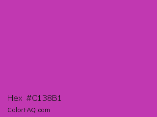 Hex #c138b1 Color is a normal magenta color and the nearest color is Byzantine #bd33a4. Hex code #c138b1 and RGB value is rgb(193,56,177). In RGB color space, this color is composed of 76% red, 22% green, 69% blue, In CMYK color space, this color is composed of 0% cyan, 71% magenta, 8% yellow , 24% black , In HSL color space, this color has a hue angle of 307° , 55% saturation and 49% lightness.