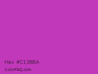 Hex #c138ba Color is a normal magenta color and the nearest color is Steel Pink #cc33cc. Hex code #c138ba and RGB value is rgb(193,56,186). In RGB color space, this color is composed of 76% red, 22% green, 73% blue, In CMYK color space, this color is composed of 0% cyan, 71% magenta, 4% yellow , 24% black , In HSL color space, this color has a hue angle of 303° , 55% saturation and 49% lightness.