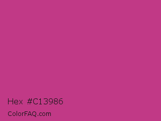 Hex #c13986 Color is a normal magenta color and the nearest color is Medium Red Violet #bb3385. Hex code #c13986 and RGB value is rgb(193,57,134). In RGB color space, this color is composed of 76% red, 22% green, 53% blue, In CMYK color space, this color is composed of 0% cyan, 70% magenta, 31% yellow , 24% black , In HSL color space, this color has a hue angle of 326° , 54% saturation and 49% lightness.
