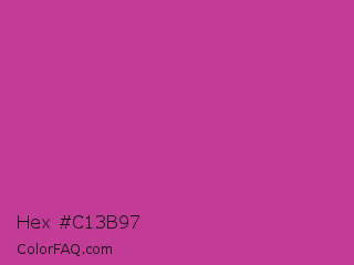 Hex #c13b97 Color is a normal magenta color and the nearest color is Byzantine #bd33a4. Hex code #c13b97 and RGB value is rgb(193,59,151). In RGB color space, this color is composed of 76% red, 23% green, 59% blue, In CMYK color space, this color is composed of 0% cyan, 69% magenta, 22% yellow , 24% black , In HSL color space, this color has a hue angle of 319° , 53% saturation and 49% lightness.