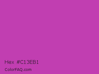 Hex #c13eb1 Color is a normal magenta color and the nearest color is Byzantine #bd33a4. Hex code #c13eb1 and RGB value is rgb(193,62,177). In RGB color space, this color is composed of 76% red, 24% green, 69% blue, In CMYK color space, this color is composed of 0% cyan, 68% magenta, 8% yellow , 24% black , In HSL color space, this color has a hue angle of 307° , 51% saturation and 50% lightness.