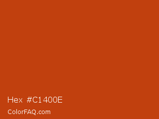Hex #c1400e Color is a normal orange color and the nearest color is Tia Maria #c1440e. Hex code #c1400e and RGB value is rgb(193,64,14). In RGB color space, this color is composed of 76% red, 25% green, 5% blue, In CMYK color space, this color is composed of 0% cyan, 67% magenta, 93% yellow , 24% black , In HSL color space, this color has a hue angle of 17° , 86% saturation and 41% lightness.