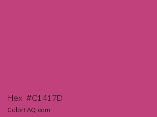 Hex #c1417d Color is a normal rose color and the nearest color is Fuchsia Rose #c74375. Hex code #c1417d and RGB value is rgb(193,65,125). In RGB color space, this color is composed of 76% red, 25% green, 49% blue, In CMYK color space, this color is composed of 0% cyan, 66% magenta, 35% yellow , 24% black , In HSL color space, this color has a hue angle of 332° , 51% saturation and 51% lightness.
