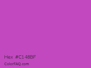Hex #c148bf Color is a normal magenta color and the nearest color is Fuchsia Pink #c154c1. Hex code #c148bf and RGB value is rgb(193,72,191). In RGB color space, this color is composed of 76% red, 28% green, 75% blue, In CMYK color space, this color is composed of 0% cyan, 63% magenta, 1% yellow , 24% black , In HSL color space, this color has a hue angle of 301° , 49% saturation and 52% lightness.