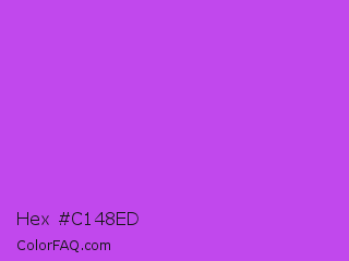 Hex #c148ed Color is a light purple color and the nearest color is Medium Orchid #ba55d3. Hex code #c148ed and RGB value is rgb(193,72,237). In RGB color space, this color is composed of 76% red, 28% green, 93% blue, In CMYK color space, this color is composed of 19% cyan, 70% magenta, 0% yellow , 7% black , In HSL color space, this color has a hue angle of 284° , 82% saturation and 61% lightness.