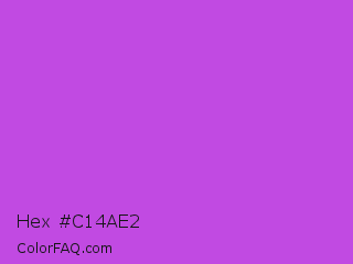 Hex #c14ae2 Color is a normal purple color and the nearest color is Medium Orchid #ba55d3. Hex code #c14ae2 and RGB value is rgb(193,74,226). In RGB color space, this color is composed of 76% red, 29% green, 89% blue, In CMYK color space, this color is composed of 15% cyan, 67% magenta, 0% yellow , 11% black , In HSL color space, this color has a hue angle of 287° , 72% saturation and 59% lightness.