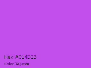 Hex #c14deb Color is a light purple color and the nearest color is Medium Orchid #ba55d3. Hex code #c14deb and RGB value is rgb(193,77,235). In RGB color space, this color is composed of 76% red, 30% green, 92% blue, In CMYK color space, this color is composed of 18% cyan, 67% magenta, 0% yellow , 8% black , In HSL color space, this color has a hue angle of 284° , 80% saturation and 61% lightness.