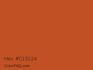Hex #c15124 Color is a normal orange color and the nearest color is Orange Roughy #c45719. Hex code #c15124 and RGB value is rgb(193,81,36). In RGB color space, this color is composed of 76% red, 32% green, 14% blue, In CMYK color space, this color is composed of 0% cyan, 58% magenta, 81% yellow , 24% black , In HSL color space, this color has a hue angle of 17° , 69% saturation and 45% lightness.