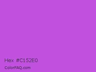 Hex #c152e0 Color is a normal purple color and the nearest color is Medium Orchid #ba55d3. Hex code #c152e0 and RGB value is rgb(193,82,224). In RGB color space, this color is composed of 76% red, 32% green, 88% blue, In CMYK color space, this color is composed of 14% cyan, 63% magenta, 0% yellow , 12% black , In HSL color space, this color has a hue angle of 287° , 70% saturation and 60% lightness.