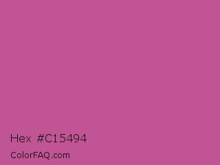 Hex #c15494 Color is a normal magenta color and the nearest color is Mulberry #c54b8c. Hex code #c15494 and RGB value is rgb(193,84,148). In RGB color space, this color is composed of 76% red, 33% green, 58% blue, In CMYK color space, this color is composed of 0% cyan, 56% magenta, 23% yellow , 24% black , In HSL color space, this color has a hue angle of 325° , 47% saturation and 54% lightness.