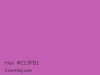 Hex #c15fb1 Color is a normal magenta color and the nearest color is Fuchsia Pink #c154c1. Hex code #c15fb1 and RGB value is rgb(193,95,177). In RGB color space, this color is composed of 76% red, 37% green, 69% blue, In CMYK color space, this color is composed of 0% cyan, 51% magenta, 8% yellow , 24% black , In HSL color space, this color has a hue angle of 310° , 44% saturation and 56% lightness.