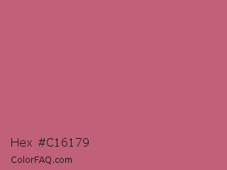 Hex #c16179 Color is a normal red color and the nearest color is Cinnamon Satin #cd607e. Hex code #c16179 and RGB value is rgb(193,97,121). In RGB color space, this color is composed of 76% red, 38% green, 47% blue, In CMYK color space, this color is composed of 0% cyan, 50% magenta, 37% yellow , 24% black , In HSL color space, this color has a hue angle of 345° , 44% saturation and 57% lightness.