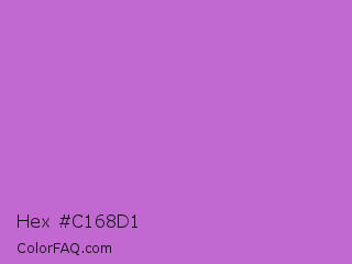 Hex #c168d1 Color is a light purple color and the nearest color is Rich Lilac #b666d2. Hex code #c168d1 and RGB value is rgb(193,104,209). In RGB color space, this color is composed of 76% red, 41% green, 82% blue, In CMYK color space, this color is composed of 8% cyan, 50% magenta, 0% yellow , 18% black , In HSL color space, this color has a hue angle of 291° , 53% saturation and 61% lightness.