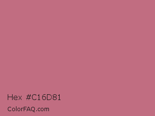 Hex #c16d81 Color is a normal red color and the nearest color is Rose Gold #b76e79. Hex code #c16d81 and RGB value is rgb(193,109,129). In RGB color space, this color is composed of 76% red, 43% green, 51% blue, In CMYK color space, this color is composed of 0% cyan, 44% magenta, 33% yellow , 24% black , In HSL color space, this color has a hue angle of 346° , 40% saturation and 59% lightness.