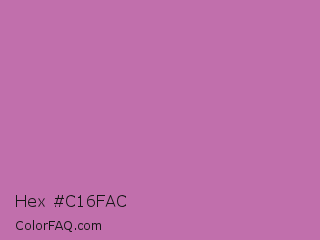 Hex #c16fac Color is a normal magenta color and the nearest color is Sky Magenta #cf71af. Hex code #c16fac and RGB value is rgb(193,111,172). In RGB color space, this color is composed of 76% red, 44% green, 67% blue, In CMYK color space, this color is composed of 0% cyan, 42% magenta, 11% yellow , 24% black , In HSL color space, this color has a hue angle of 315° , 40% saturation and 60% lightness.