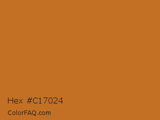 Hex #c17024 Color is a normal orange color and the nearest color is Bourbon #ba6f1e. Hex code #c17024 and RGB value is rgb(193,112,36). In RGB color space, this color is composed of 76% red, 44% green, 14% blue, In CMYK color space, this color is composed of 0% cyan, 42% magenta, 81% yellow , 24% black , In HSL color space, this color has a hue angle of 29° , 69% saturation and 45% lightness.