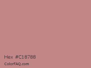 Hex #c18788 Color is a light red color and the nearest color is Brandy Rose #bb8983. Hex code #c18788 and RGB value is rgb(193,135,136). In RGB color space, this color is composed of 76% red, 53% green, 53% blue, In CMYK color space, this color is composed of 0% cyan, 30% magenta, 30% yellow , 24% black , In HSL color space, this color has a hue angle of 359° , 32% saturation and 64% lightness.