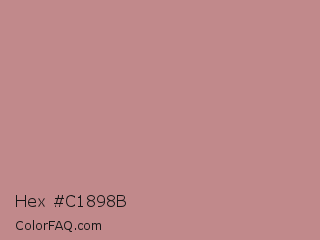 Hex #c1898b Color is a light red color and the nearest color is Rosy Brown #bc8f8f. Hex code #c1898b and RGB value is rgb(193,137,139). In RGB color space, this color is composed of 76% red, 54% green, 55% blue, In CMYK color space, this color is composed of 0% cyan, 29% magenta, 28% yellow , 24% black , In HSL color space, this color has a hue angle of 358° , 31% saturation and 65% lightness.