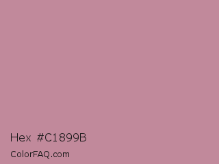 Hex #c1899b Color is a light rose color and the nearest color is Puce #cc8899. Hex code #c1899b and RGB value is rgb(193,137,155). In RGB color space, this color is composed of 76% red, 54% green, 61% blue, In CMYK color space, this color is composed of 0% cyan, 29% magenta, 20% yellow , 24% black , In HSL color space, this color has a hue angle of 341° , 31% saturation and 65% lightness.