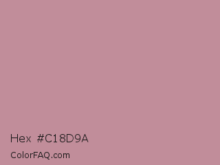 Hex #c18d9a Color is a light red color and the nearest color is Oriental Pink #c69191. Hex code #c18d9a and RGB value is rgb(193,141,154). In RGB color space, this color is composed of 76% red, 55% green, 60% blue, In CMYK color space, this color is composed of 0% cyan, 27% magenta, 20% yellow , 24% black , In HSL color space, this color has a hue angle of 345° , 30% saturation and 65% lightness.