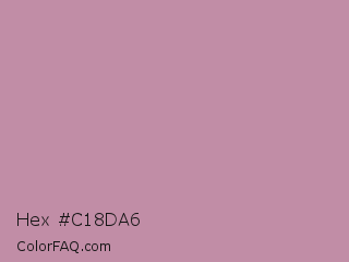 Hex #c18da6 Color is a light rose color and the nearest color is Viola #cb8fa9. Hex code #c18da6 and RGB value is rgb(193,141,166). In RGB color space, this color is composed of 76% red, 55% green, 65% blue, In CMYK color space, this color is composed of 0% cyan, 27% magenta, 14% yellow , 24% black , In HSL color space, this color has a hue angle of 331° , 30% saturation and 65% lightness.