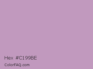 Hex #c199be Color is a light magenta color and the nearest color is London Hue #bea6c3. Hex code #c199be and RGB value is rgb(193,153,190). In RGB color space, this color is composed of 76% red, 60% green, 75% blue, In CMYK color space, this color is composed of 0% cyan, 21% magenta, 2% yellow , 24% black , In HSL color space, this color has a hue angle of 305° , 24% saturation and 68% lightness.