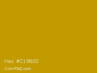 Hex #c19b00 Color is a normal yellow color and the nearest color is Buddha Gold #c1a004. Hex code #c19b00 and RGB value is rgb(193,155,0). In RGB color space, this color is composed of 76% red, 61% green, 0% blue, In CMYK color space, this color is composed of 0% cyan, 20% magenta, 100% yellow , 24% black , In HSL color space, this color has a hue angle of 48° , 100% saturation and 38% lightness.