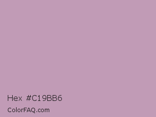 Hex #c19bb6 Color is a light magenta color and the nearest color is Pastel Purple #b39eb5. Hex code #c19bb6 and RGB value is rgb(193,155,182). In RGB color space, this color is composed of 76% red, 61% green, 71% blue, In CMYK color space, this color is composed of 0% cyan, 20% magenta, 6% yellow , 24% black , In HSL color space, this color has a hue angle of 317° , 23% saturation and 68% lightness.