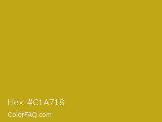 Hex #c1a718 Color is a normal yellow color and the nearest color is Sahara #b7a214. Hex code #c1a718 and RGB value is rgb(193,167,24). In RGB color space, this color is composed of 76% red, 65% green, 9% blue, In CMYK color space, this color is composed of 0% cyan, 13% magenta, 88% yellow , 24% black , In HSL color space, this color has a hue angle of 51° , 78% saturation and 43% lightness.