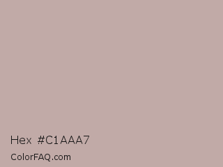 Hex #c1aaa7 Color is a light red color and the nearest color is Silver Pink #c4aead. Hex code #c1aaa7 and RGB value is rgb(193,170,167). In RGB color space, this color is composed of 76% red, 67% green, 65% blue, In CMYK color space, this color is composed of 0% cyan, 12% magenta, 13% yellow , 24% black , In HSL color space, this color has a hue angle of 7° , 17% saturation and 71% lightness.
