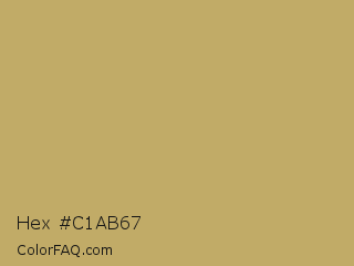 Hex #c1ab67 Color is a normal orange color and the nearest color is Laser #c8b568. Hex code #c1ab67 and RGB value is rgb(193,171,103). In RGB color space, this color is composed of 76% red, 67% green, 40% blue, In CMYK color space, this color is composed of 0% cyan, 11% magenta, 47% yellow , 24% black , In HSL color space, this color has a hue angle of 45° , 42% saturation and 58% lightness.