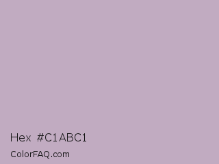 Hex #c1abc1 Color is a light magenta color and the nearest color is London Hue #bea6c3. Hex code #c1abc1 and RGB value is rgb(193,171,193). In RGB color space, this color is composed of 76% red, 67% green, 76% blue, In CMYK color space, this color is composed of 0% cyan, 11% magenta, 0% yellow , 24% black , In HSL color space, this color has a hue angle of 300° , 15% saturation and 71% lightness.