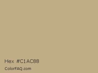 Hex #c1ac88 Color is a light orange color and the nearest color is Sand Ecru #c2b280. Hex code #c1ac88 and RGB value is rgb(193,172,136). In RGB color space, this color is composed of 76% red, 67% green, 53% blue, In CMYK color space, this color is composed of 0% cyan, 11% magenta, 30% yellow , 24% black , In HSL color space, this color has a hue angle of 38° , 31% saturation and 65% lightness.