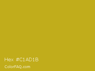 Hex #c1ad1b Color is a normal yellow color and the nearest color is Sahara #b7a214. Hex code #c1ad1b and RGB value is rgb(193,173,27). In RGB color space, this color is composed of 76% red, 68% green, 11% blue, In CMYK color space, this color is composed of 0% cyan, 10% magenta, 86% yellow , 24% black , In HSL color space, this color has a hue angle of 53° , 75% saturation and 43% lightness.
