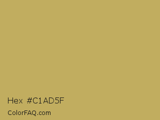 Hex #c1ad5f Color is a normal yellow color and the nearest color is Vegas Gold #c5b358. Hex code #c1ad5f and RGB value is rgb(193,173,95). In RGB color space, this color is composed of 76% red, 68% green, 37% blue, In CMYK color space, this color is composed of 0% cyan, 10% magenta, 51% yellow , 24% black , In HSL color space, this color has a hue angle of 48° , 44% saturation and 56% lightness.