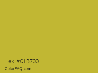Hex #c1b733 Color is a normal yellow color and the nearest color is Earls Green #c9b93b. Hex code #c1b733 and RGB value is rgb(193,183,51). In RGB color space, this color is composed of 76% red, 72% green, 20% blue, In CMYK color space, this color is composed of 0% cyan, 5% magenta, 74% yellow , 24% black , In HSL color space, this color has a hue angle of 56° , 58% saturation and 48% lightness.