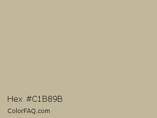 Hex #c1b89b Color is a light yellow color and the nearest color is Bison Hide #c1b7a4. Hex code #c1b89b and RGB value is rgb(193,184,155). In RGB color space, this color is composed of 76% red, 72% green, 61% blue, In CMYK color space, this color is composed of 0% cyan, 5% magenta, 20% yellow , 24% black , In HSL color space, this color has a hue angle of 46° , 23% saturation and 68% lightness.