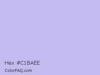 Hex #c1baee Color is a very light indigo color and the nearest color is Perfume #d0bef8. Hex code #c1baee and RGB value is rgb(193,186,238). In RGB color space, this color is composed of 76% red, 73% green, 93% blue, In CMYK color space, this color is composed of 19% cyan, 22% magenta, 0% yellow , 7% black , In HSL color space, this color has a hue angle of 248° , 60% saturation and 83% lightness.