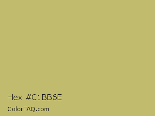 Hex #c1bb6e Color is a normal yellow color and the nearest color is Dark Khaki #bdb76b. Hex code #c1bb6e and RGB value is rgb(193,187,110). In RGB color space, this color is composed of 76% red, 73% green, 43% blue, In CMYK color space, this color is composed of 0% cyan, 3% magenta, 43% yellow , 24% black , In HSL color space, this color has a hue angle of 56° , 40% saturation and 59% lightness.