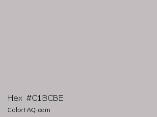 Hex #c1bcbe Color is a light rose color and the nearest color is Gray X11 Gray #bebebe. Hex code #c1bcbe and RGB value is rgb(193,188,190). In RGB color space, this color is composed of 76% red, 74% green, 75% blue, In CMYK color space, this color is composed of 0% cyan, 3% magenta, 2% yellow , 24% black , In HSL color space, this color has a hue angle of 336° , 4% saturation and 75% lightness.