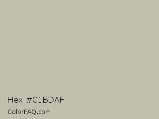 Hex #c1bdaf Color is a light yellow color and the nearest color is Tea #c1bab0. Hex code #c1bdaf and RGB value is rgb(193,189,175). In RGB color space, this color is composed of 76% red, 74% green, 69% blue, In CMYK color space, this color is composed of 0% cyan, 2% magenta, 9% yellow , 24% black , In HSL color space, this color has a hue angle of 47° , 13% saturation and 72% lightness.