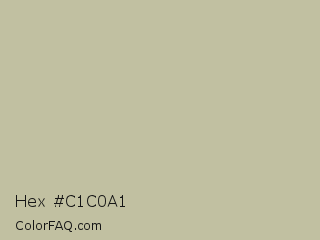 Hex #c1c0a1 Color is a light yellow color and the nearest color is Coral Reef #c7bca2. Hex code #c1c0a1 and RGB value is rgb(193,192,161). In RGB color space, this color is composed of 76% red, 75% green, 63% blue, In CMYK color space, this color is composed of 0% cyan, 1% magenta, 17% yellow , 24% black , In HSL color space, this color has a hue angle of 58° , 21% saturation and 69% lightness.
