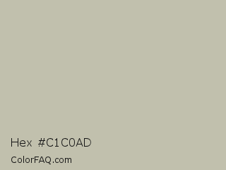 Hex #c1c0ad Color is a light yellow color and the nearest color is Tea #c1bab0. Hex code #c1c0ad and RGB value is rgb(193,192,173). In RGB color space, this color is composed of 76% red, 75% green, 68% blue, In CMYK color space, this color is composed of 0% cyan, 1% magenta, 10% yellow , 24% black , In HSL color space, this color has a hue angle of 57° , 14% saturation and 72% lightness.