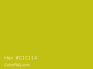 Hex #c1c114 Color is a normal yellow color and the nearest color is La Rioja #b3c110. Hex code #c1c114 and RGB value is rgb(193,193,20). In RGB color space, this color is composed of 76% red, 76% green, 8% blue, In CMYK color space, this color is composed of 0% cyan, 0% magenta, 90% yellow , 24% black , In HSL color space, this color has a hue angle of 60° , 81% saturation and 42% lightness.