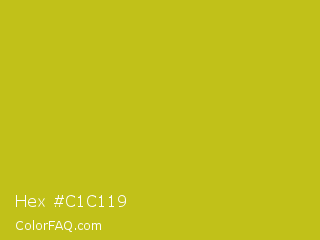 Hex #c1c119 Color is a normal yellow color and the nearest color is Key Lime Pie #bfc921. Hex code #c1c119 and RGB value is rgb(193,193,25). In RGB color space, this color is composed of 76% red, 76% green, 10% blue, In CMYK color space, this color is composed of 0% cyan, 0% magenta, 87% yellow , 24% black , In HSL color space, this color has a hue angle of 60° , 77% saturation and 43% lightness.