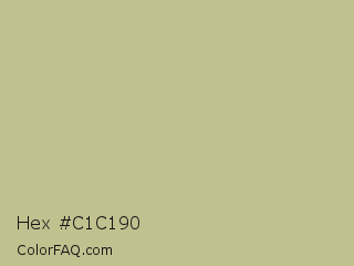 Hex #c1c190 Color is a light yellow color and the nearest color is Sage #bcb88a. Hex code #c1c190 and RGB value is rgb(193,193,144). In RGB color space, this color is composed of 76% red, 76% green, 56% blue, In CMYK color space, this color is composed of 0% cyan, 0% magenta, 25% yellow , 24% black , In HSL color space, this color has a hue angle of 60° , 28% saturation and 66% lightness.